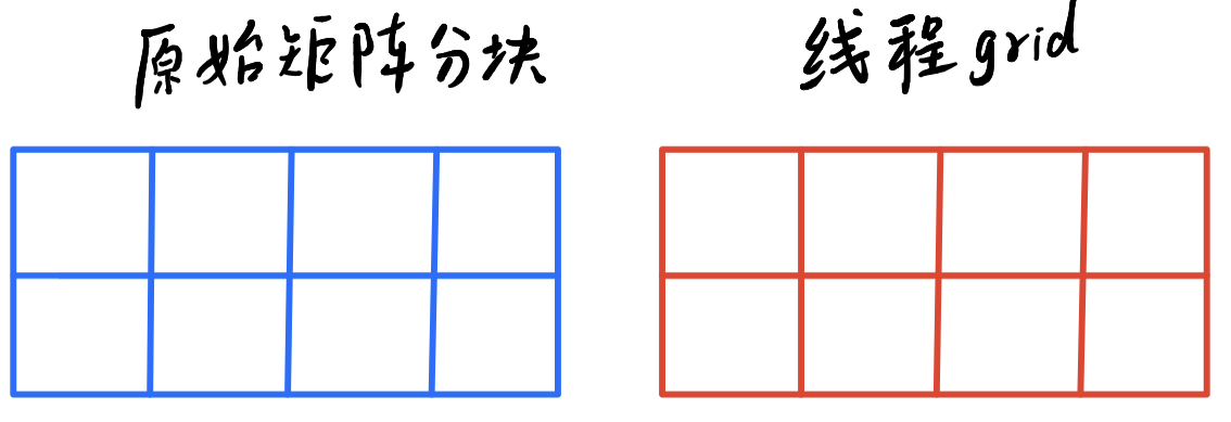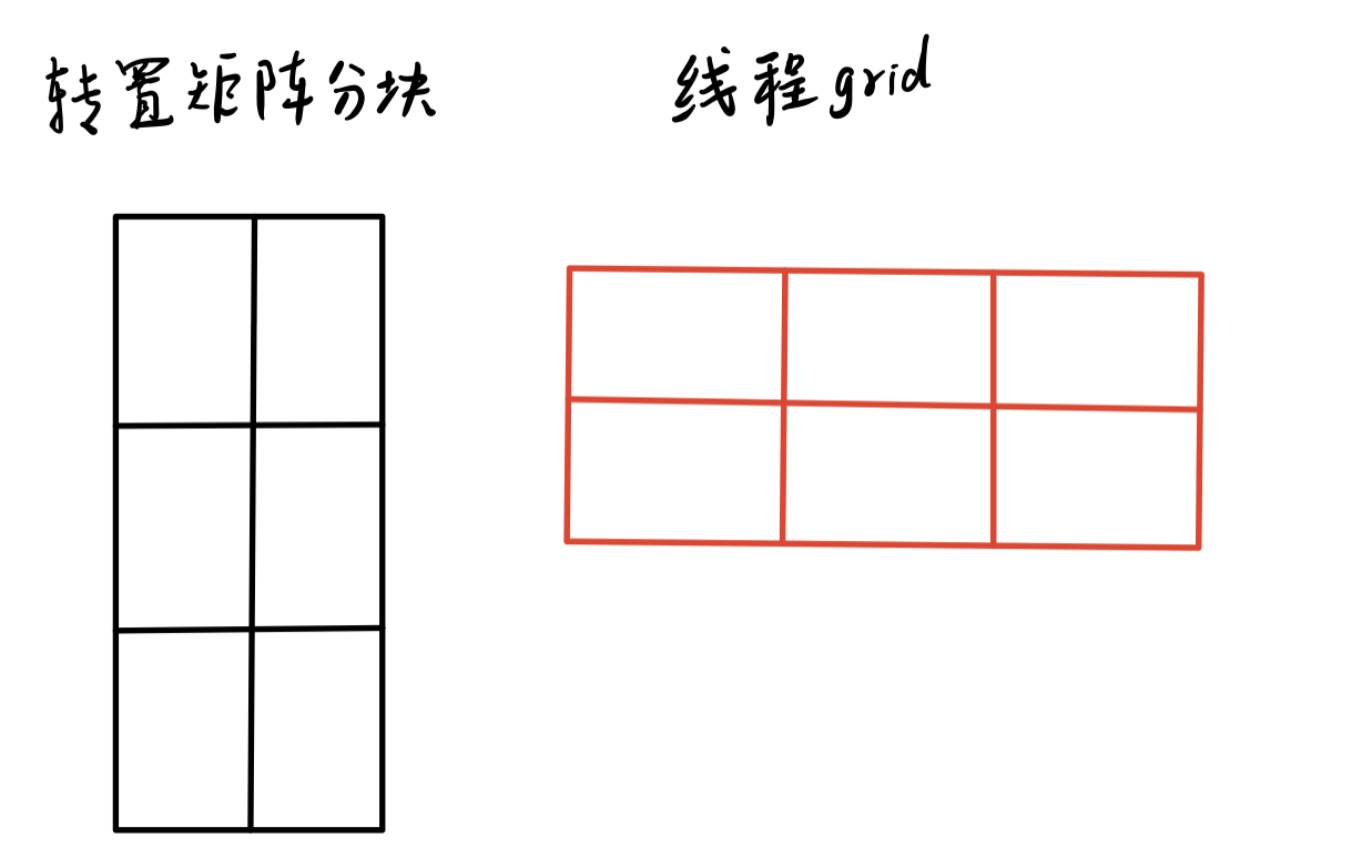 第二映射就不是很直观了,是线程索引到转置后的矩阵的坐标的映射。 如下图所示: